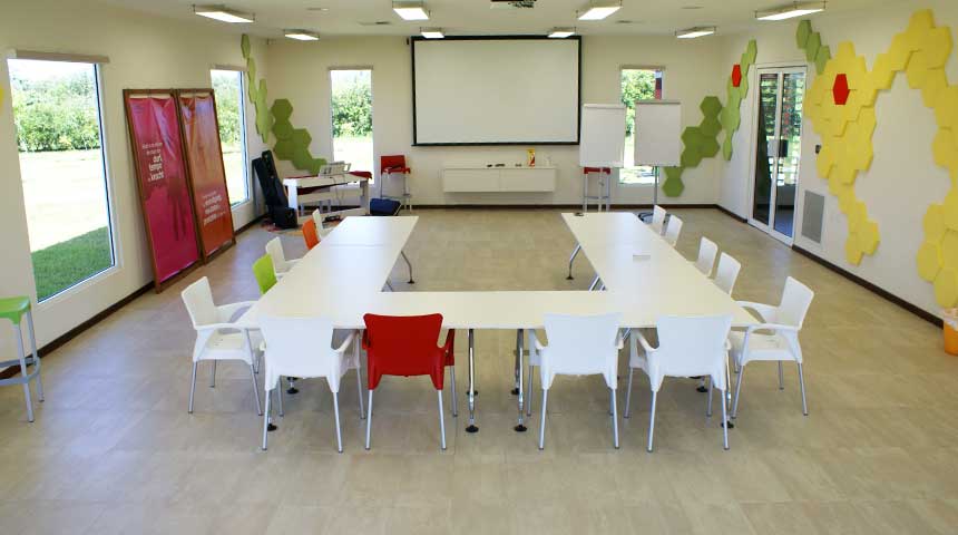 Het staat op een halve hectare grond, waarvan ook het terrein maximaal is ontwikkeld in harmonie met het gebouw en ter ondersteuning van het Verbinden van Natuur en Werken, Verbinden van Natuur en Mens… Verbinden van Natuur en Values.
