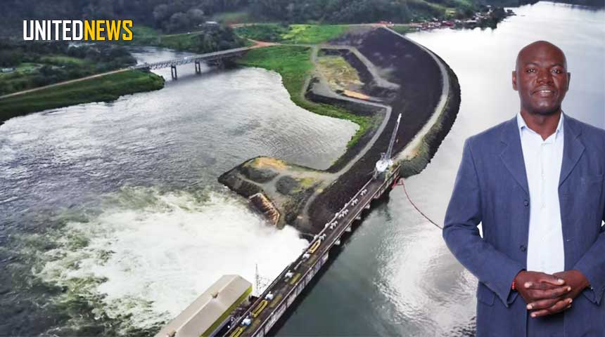 Beeld: Afobakka stuwdam tijdens het spuien en rechts BEP-fractieleider, Ronny Asabina