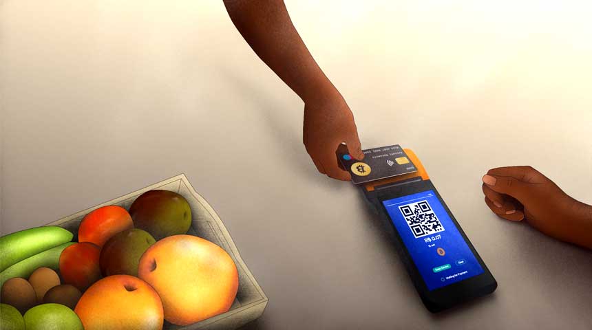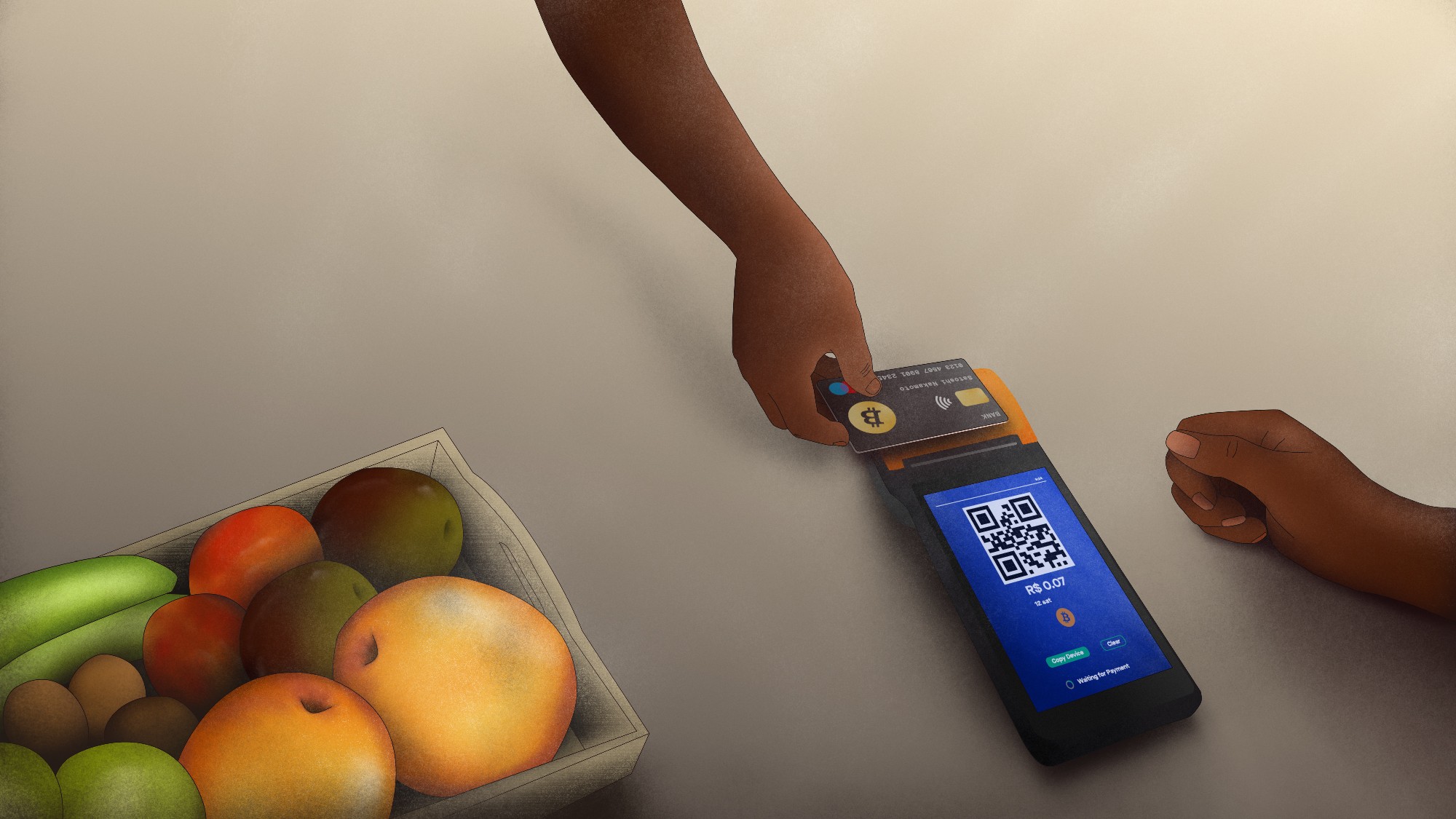 “Banaan of pompelmoes vandaag, Ravi?” Miguel stelt de vraag met een glimlach, al wetende van Ravi’s voorliefde voor pompelmoes. Als dagelijkse bezoeker van het Tamara kindertehuis in Paramaribo, weet Miguel dat de 8-jarige Ravi een groot fan is van dit fruit. “Pak de kaart, Ravi, je kent de procedure.” Met een behendige beweging swipet Ravi de Bitcoindebetkaart over de lezer, symbolisch 1 sat (1/miljoenste bitcoin) uitgevend. Miguel overhandigt hem de pompelmoes, en Ravi gaat zitten om te genieten van zijn Surinaamse lekkernij.