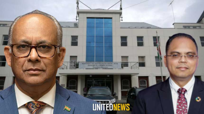 Fotocompilatie: minister Albert Ramdin en directeur Luziano Truideman van Buitenlandse Zaken.