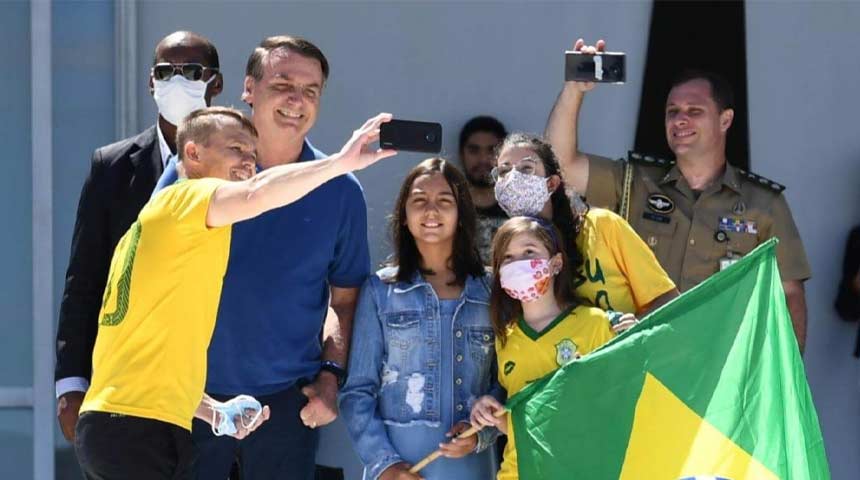 In tegenstelling tot recente demonstraties waarin hij verscheen, hield de extreemrechtse president – die geen masker droeg – een afstand van ongeveer twee meter van zijn dichtstbijzijnde supporters, na zijn toespraak buiten het presidentieel paleis. Hij maakte echter een uitzondering voor supporters die bij hem kwamen voor een selfie met zijn negenjarige dochter Laura. Deskundigen zetten zich schrap voor de grootste uitbraak in Zuid-Amerika die nog veel erger zal worden, aangezien wordt aangenomen dat het hoogtepunt van de pandemie over enkele weken wordt bereikt.