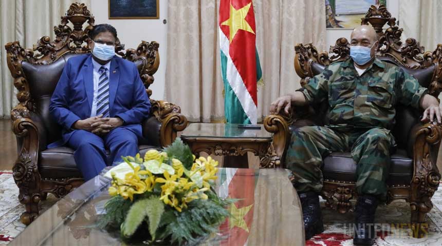 Aftredend president Desi Bouterse heeft woensdag voor de laatste keer inkomend president Chan Santokhi ontvangen.