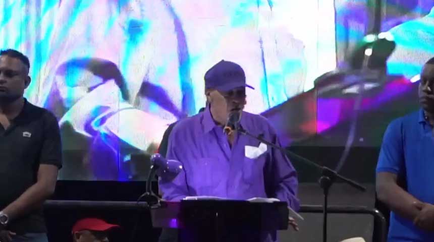 Het land kent al grote problemen, zei Bouterse, onder meer verwijzend naar de economische crisis. Bouterse (78) gaf ook de aanwezigen de kans om zich uit te laten over de vraag of hij zich woensdag wel bij het Hof van Justitie moet melden. Mensen lieten massaal van zich horen met een luid ‘nee!’. Het hof doet woensdag in hoger beroep uitspraak over de Decembermoorden.