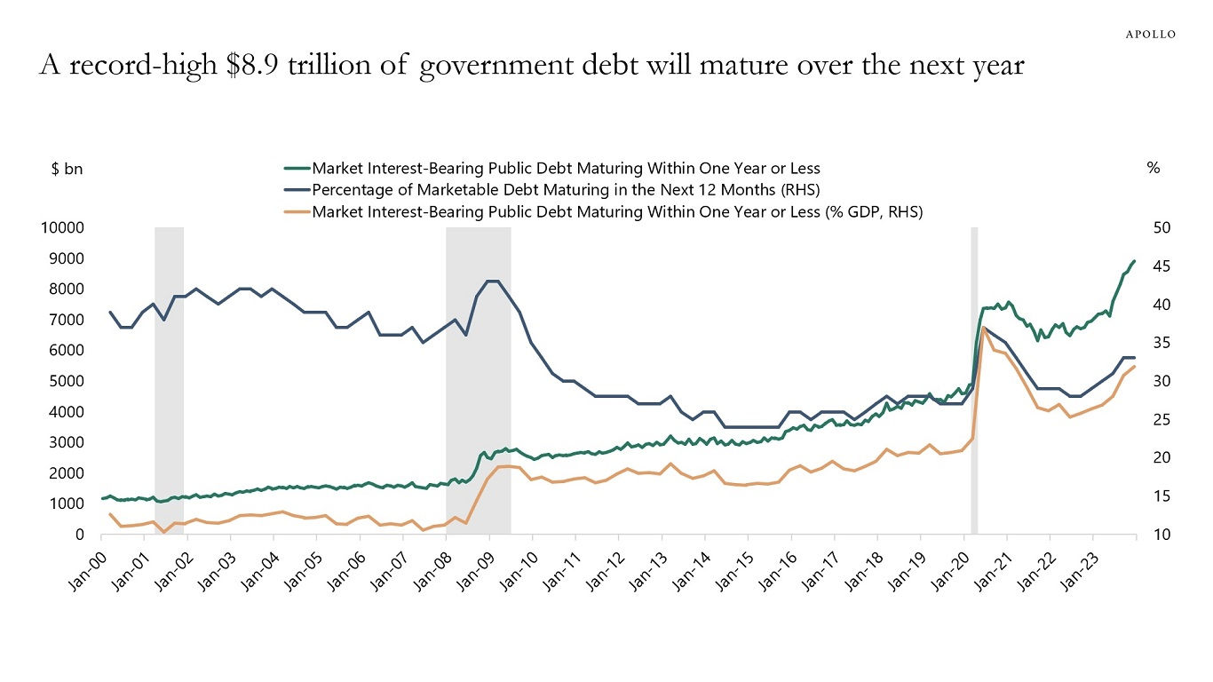Het komende jaar moet de Amerikaanse overheid voor 8,9 biljoen dollar aan schulden herfinancieren.