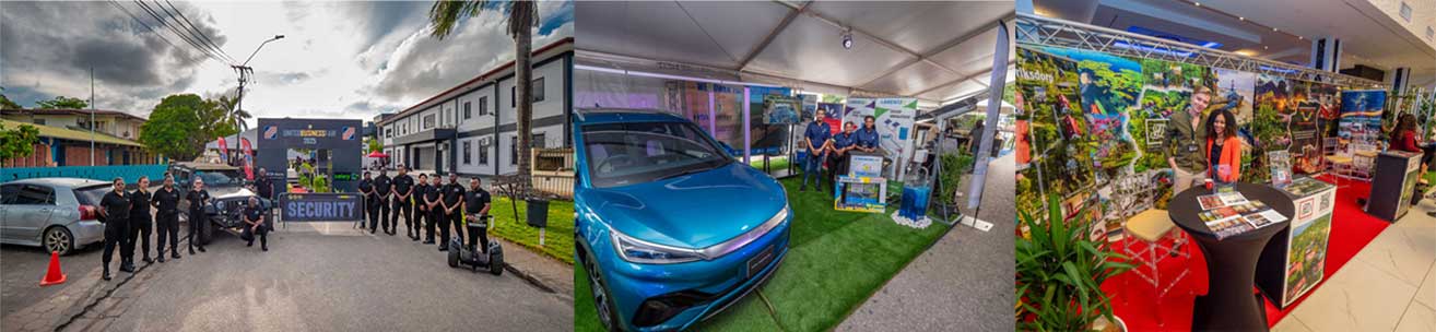 “De impact van de beurs hebben wij al op de eerste dag waargenomen. Er zijn hier toeristische bedrijven die interesse hebben in goede, betaalbare en op het toerisme gerichte cabana’s en vakantiehuisjes die ze willen opzetten voor hun klanten. Ze zijn naar ons gekomen en vinden ons bouwsysteem interessant en toepasbaar voor hun doel en situatie in het binnenland. Dat is voor mij een pure vorm van business-to-business”, motiveert CEO Roger Tanoewihardjo van Housing Contracting Unit, voor wie het de eerste keer is geweest om mee te doen aan de United Business Beurs. Hij noemt de belangstelling van de bedrijven naar en in elkaars producten opmerkelijk. Zijn bedrijf is gespecialiseerd in innovatieve bouw- en reparatiesystemen. Daarmee is onder andere een replica gemaakt van de bekende zogenaamde Bruynzeel-woning die enorm in trek valt bij de andere bedrijven. De business-minded CEO heeft met dit succes reeds een verdienmodel ingebouwd om in te spelen op de komende olieproductie van Suriname, waar internationale contractbedrijven die specialistisch werk verrichten voor de oliemultinationals, behoefte gaan hebben aan praktische woon- en vakantieverblijven voor hun medewerkers. “Een pure vorm van hoe ik local content vertaal, zolang je maar werkt en voldoet aan de gevraagde standaarden”, zegt Tanoewihardjo.
