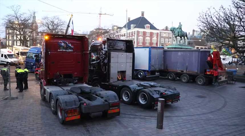 Truckers blokkeren Binnenhof tijdens coronaprotest, veel verkeersoverlast