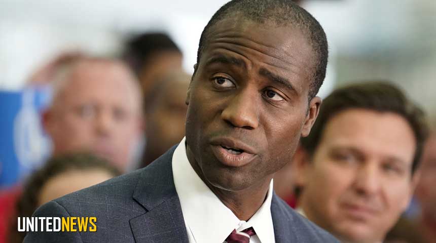Foto: Chirurg Joseph Ladapo met op de achtergrond de gouverneur van Florida, Ron DeSantis. | Auteur: Katherine Fung | Bron: Newsweek