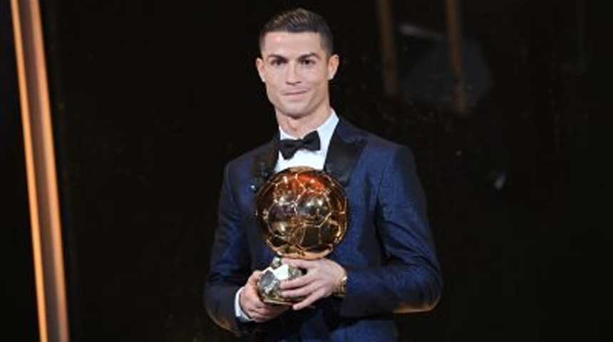 Cristiano Ronaldo is donderdagavond in Parijs voor de vijfde keer onderscheiden met de Gouden Bal, de prestigieuze verkiezing gehouden door het blad France Football.