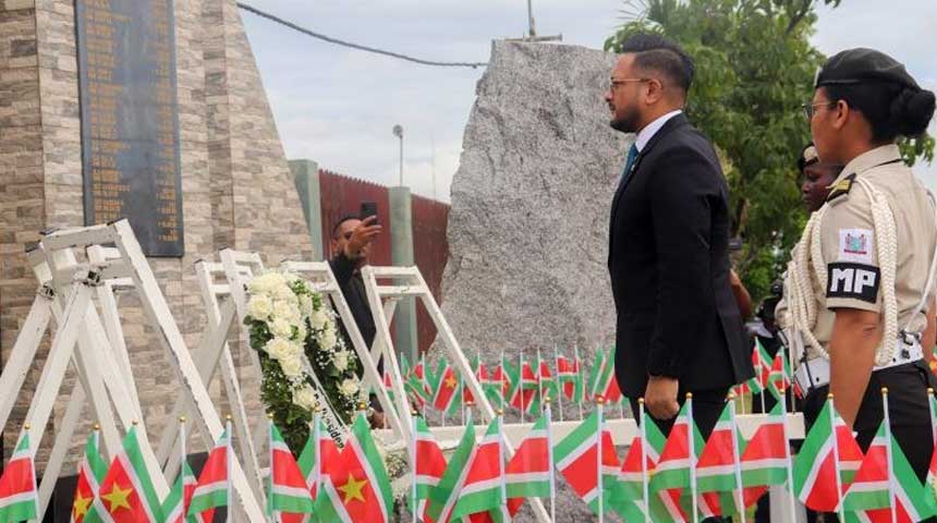 Defensieminister Uraiqit Ramsaran benadrukte in zijn toespraak het diepe belang van deze jaarlijkse herdenking, die inmiddels voor de negende keer plaatsvindt. “Vandaag nemen we een moment van stilte. Niet zomaar stilte, maar stilte met betekenis,” aldus de bewindsman. Hij bedankte de nabestaanden voor hun moed en hun blijvende verbondenheid: “Dank, dat u uw dierbaren heeft gedeeld met het land.”