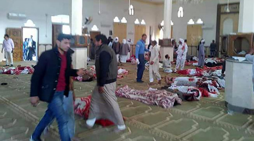 Tientallen terroristen openden na het vrijdaggebed het vuur op gelovigen die op de vlucht sloegen nadat bij de moskee een bom was ontploft. Het was de bloedigste aanslag in Egypte in de moderne geschiedenis van het land.