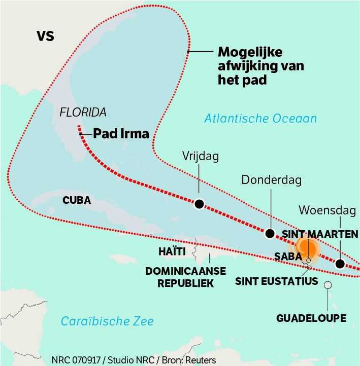 Als Irma zich aan haar voorspelde pad houdt, komt ook Cuba aan de beurt. Het autoritair geregeerde land is zeer goed voorbereid. Ambtenaren van „het Werkorgaan van de Burgerdefensie van de Nationale Defensieraad voor de Vermindering van Rampen” houden Irma nauwgezet in de gaten, meldde partijkrant Granma woensdag. De Cubaanse weerdienst gaat er nu al van uit dat Irma heftiger kan worden dan Ivan (in 2004), toen 2 miljoen Cubanen geëvacueerd werden. In de politiestaat Cuba volgen burgers evacuatiebevelen trouw op.