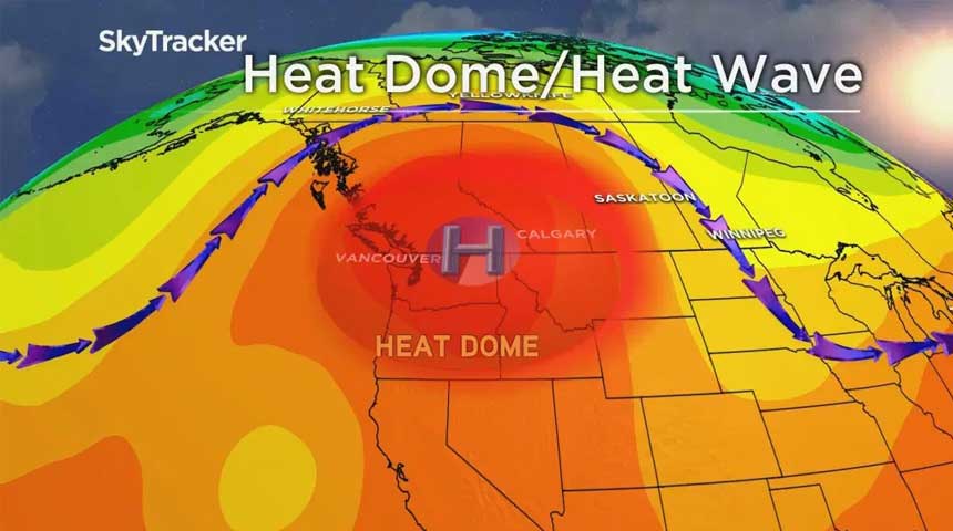 Het heeft allemaal te maken met een hogedrukgebied dat in de media een ‘heat dome’ (een ‘hittekoepel’) wordt genoemd. Het uiterste westen van Canada en ook het noordwesten van de Verenigde Staten zitten onder deze verzengende kaasstolp. Het is een zeldzaam en extreem weerbeeld maar dat wel verklaarbaar is uit klimaatverandering, zeggen experts.