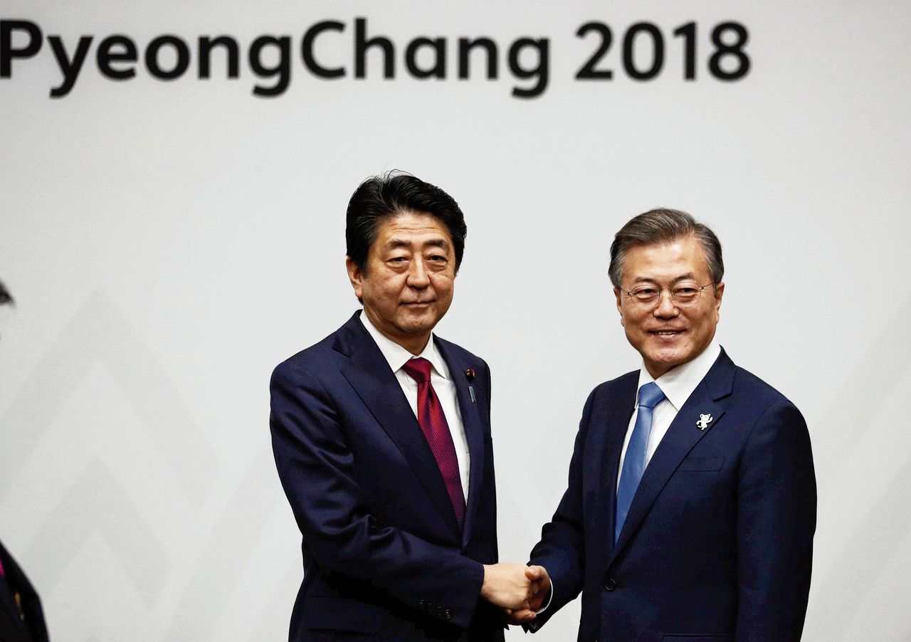 Geopolitiek tijdens de Spelen. Een gesprek tussen de leiders van Japan en Zuid-Korea moest de relatie ontdooien. Het wederzijdse Koreaanse charme-offensief was succesvoller.