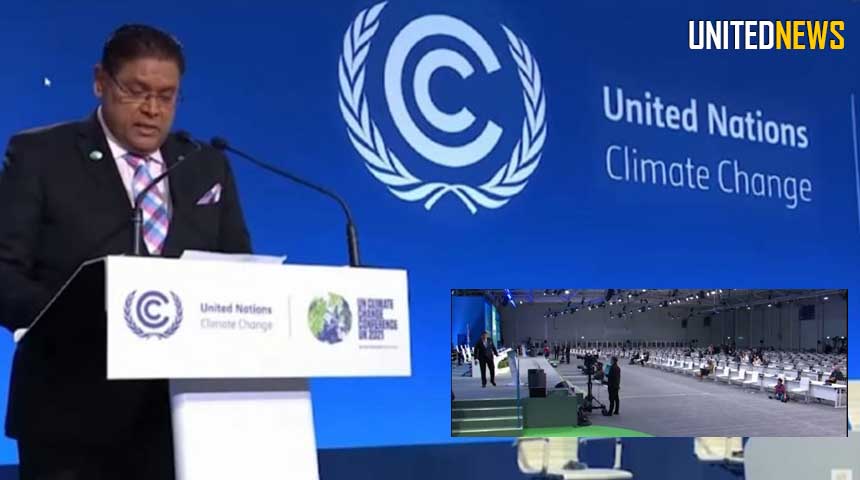 GLASGOW | PRESIDENT SANTOKHI: “IK KAN MIJN DIEPE TELEURSTELLING NIET UITEN, DAT NOCH DE FINANCIËLE STEUN, NOCH DE MITIGERENDE MAATREGELEN, EN DE VERMINDERING VAN DE UITSTOOT, BELOOFD IN 2015, ZIJN GEREALISEERD.”