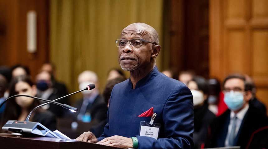 Foto: Carl Greenidge, vertegenwoordiger van Guyana bij het Internationaal Gerechtshof (ICJ) in de grenszaak met Venezuela. | Bron: OilNow.gy