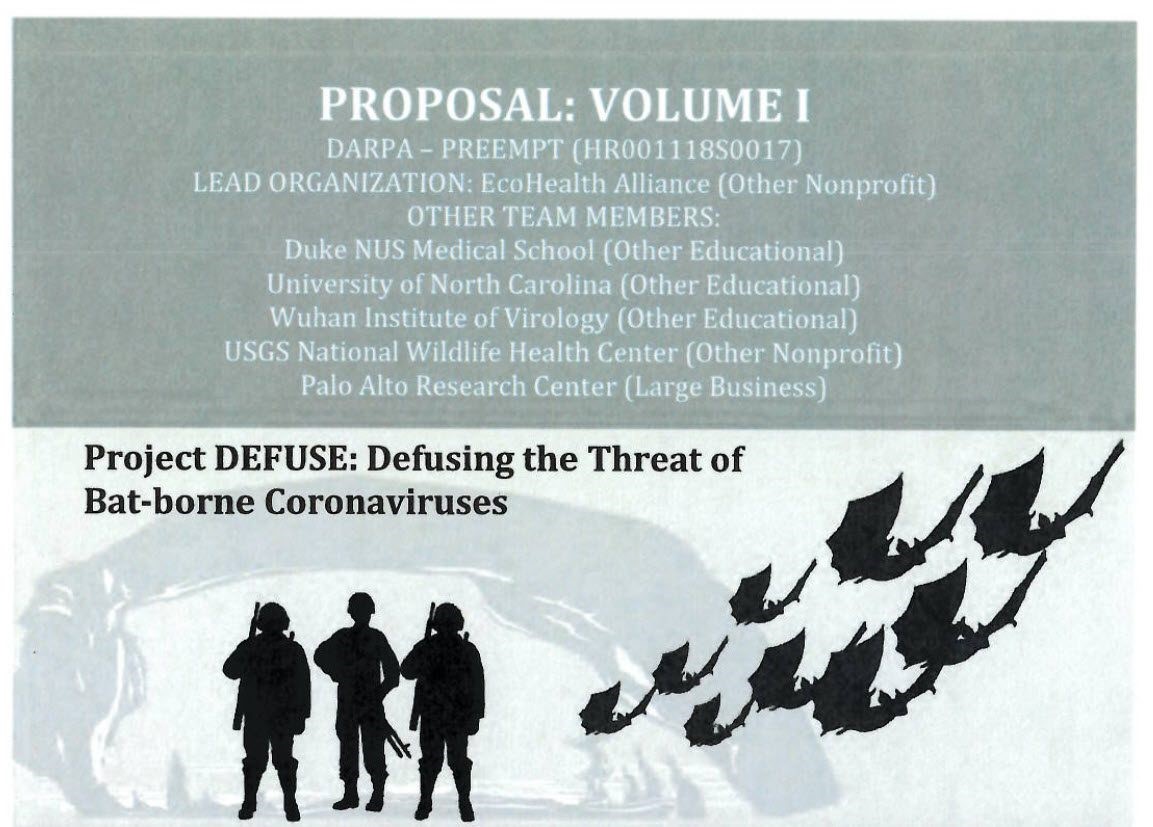 In 2018 diende Peter Daszak/EcoHealth, o.a. samen met het lab in Wuhan (!), een onderzoeksplan in voor gain of function-onderzoek met de naam DEFUSE. Het was een onderzoeksopzet om een variant van de Coronavirus te maken, die sterk lijkt op het Coronavirus, zoals het eind 2019 is begonnen om over de wereld zich te verspreiden. De aanvraag betrof 14 miljoen dollar.