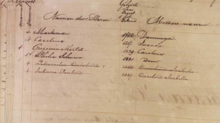En zo kan het dat duizenden mensen op Curaçao een achternaam hebben, die oorspronkelijk een voornaam van een tot slaaf gemaakt meisje was. Martina bijvoorbeeld, of Maria. Maar ook: Antonia, Margarita, Paulina, Rosa, Celestina, Martha, Juliana en Cecilia.