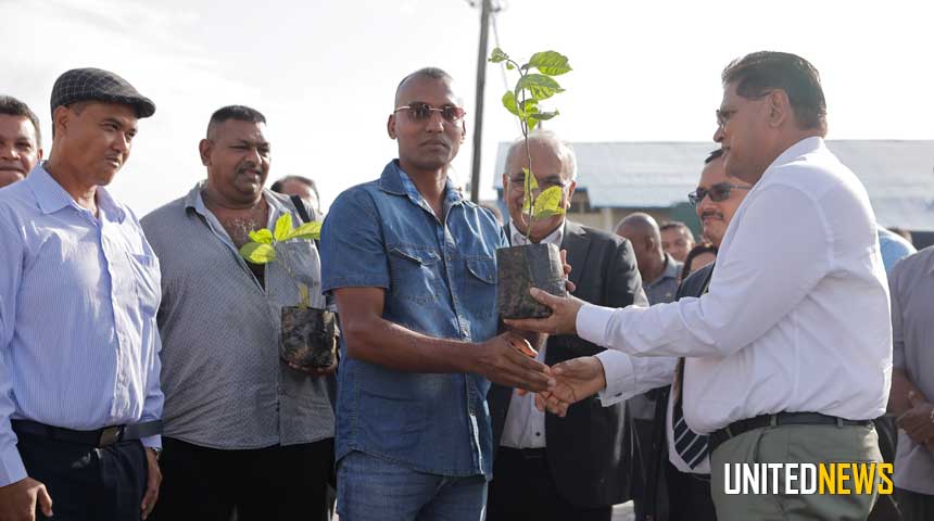 President Chandrikapersad Santokhi overhandigde de eerste vier pakketten aan vier geselecteerde telers. Dit gebeurde in aanwezigheid van minister Parmanand Sewdien van Landbouw, Veeteelt en Visserij (LVV) en de Indiase ambassadeur in Suriname, Subhash Gupta, en andere genodigden. Zowel de president als de minister gaven tijdens de aftrap uitleg over het initiatief.