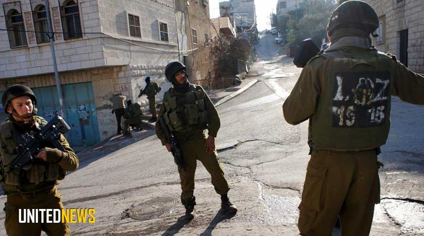 Foto: Israëlische militairen in een belegerd gebied bewaken en houden een voetganger staande bij controle werkzaamheden. | Bron: Mo.be
