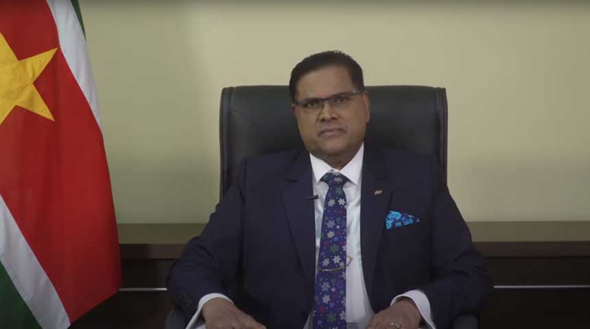 Foto: President Santokhi tijdens zijn kerstboodschap.