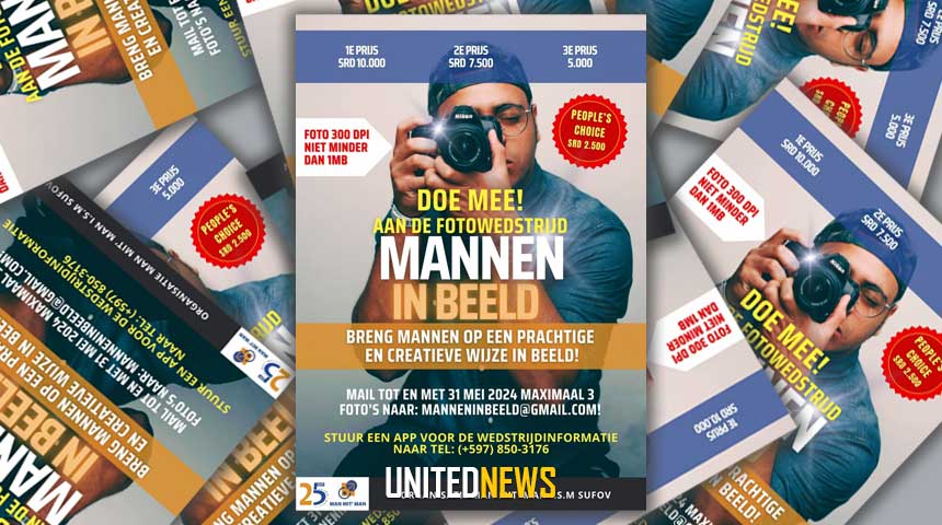 Stichting Man Mit’ Man (MMM) bestaat 25 jaar. In dit kader wordt onder meer de fotowedstrijd ‘Mannen in Beeld’ georganiseerd i.s.m. de Surinaamse Fotografen Vereniging (SUFOV). Aansluitend op de fotowedstrijd wordt een foto expositie gehouden.