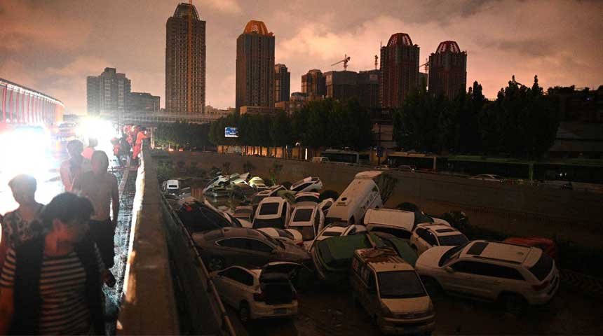 De nasleep van de overstromingen in de Chinese stad Zhengzhou: