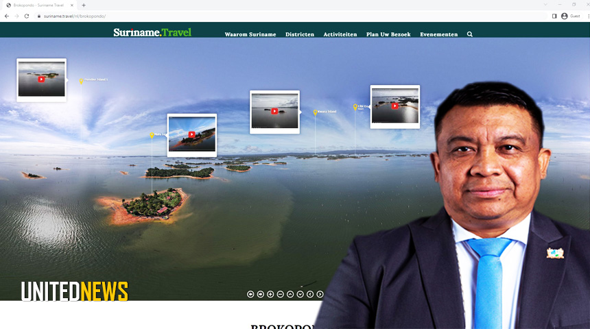 Foto: Tct minister Jubitana, tegen de achtergrond van suriname.travel