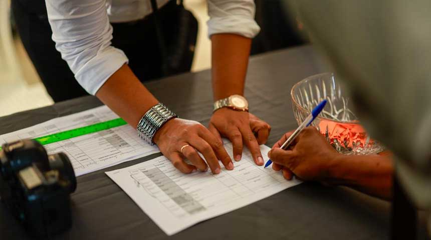 Foto: Het moment waarop een boer zich registreert voor verdere afhandeling van zijn stukken.