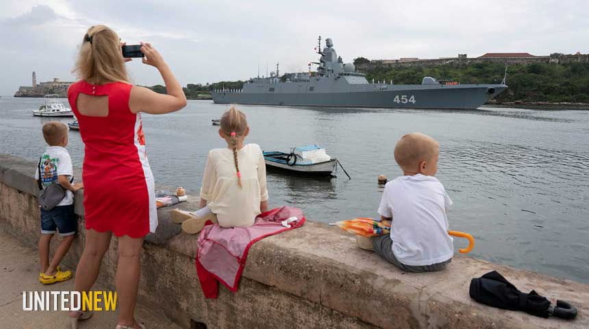 Het fregat Admiraal Gorshkov, de nucleaire onderzeeër Kazan en de twee begeleidende marineschepen Akademik Pashin en Nikolay Chiker arriveerden deze week onder grote belangstelling in de Baai van Havana, waar ze een warm welkom kregen. Daarbij vuurde de Admiraal Gorshkov 21 saluutschoten afvuren ter ere van Cuba. De Cubaanse strijdkrachten beantwoordden dit met een artilleriebatterij.