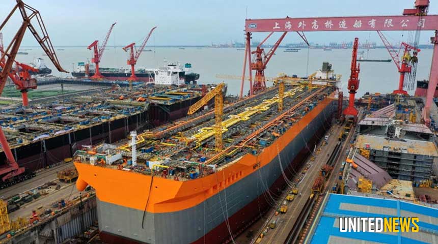 Foto: Een van de generieke Fast4ward® Multi-Purpose Floater rompen geleverd aan SBM Offshore door Shanghai Waigaoqiao Shipbuilding Co, Ltd. | Bron: OilNow.gy
