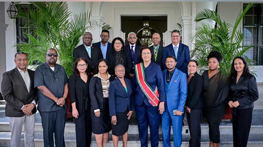Foto: President Jennifer Simons en de nieuw aangestelde leden van de Staatsraad.