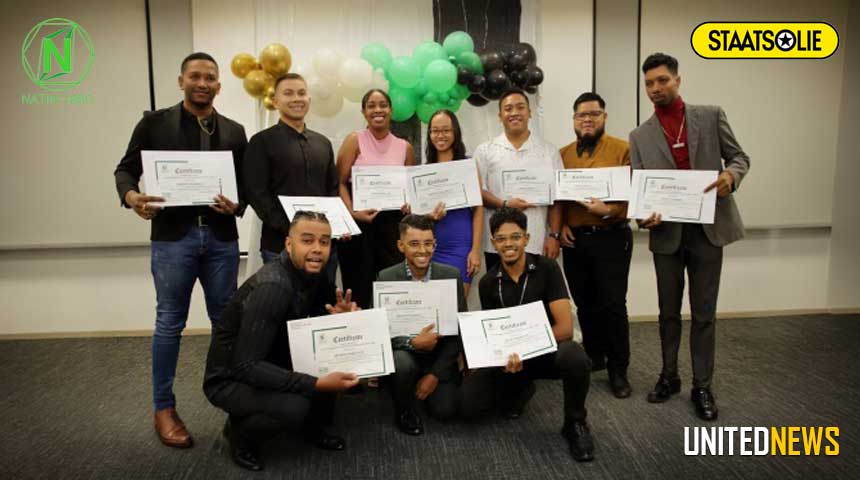 Foto: Studenten van het Natuurtechnisch Instituut Suriname (NATIN) tijdens de diploma-uitreiking van hun praktijktraining in samenwerking met Staatsolie.