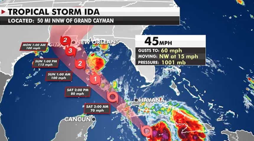 Volgens de huidige voorspellingen wordt Ida een orkaan van categorie 3, dezelfde categorie als Katrina toen die New Orleans zestien jaar geleden bereikte. Deze orkaan veroorzaakte voor 120 miljard dollar aan schade.