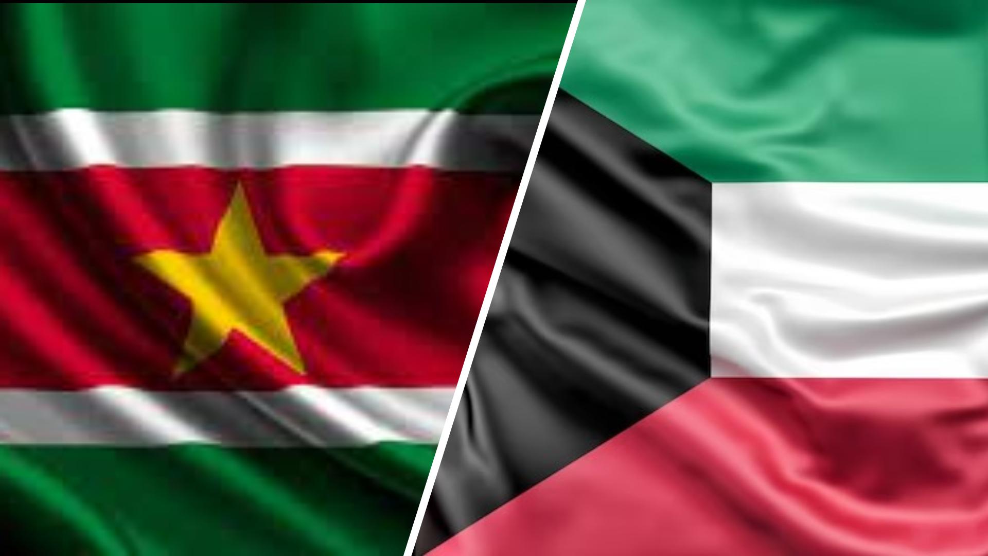Foto compilatie: De vlag van de Republiek Suriname en de vlag van de Staat Koeweit.