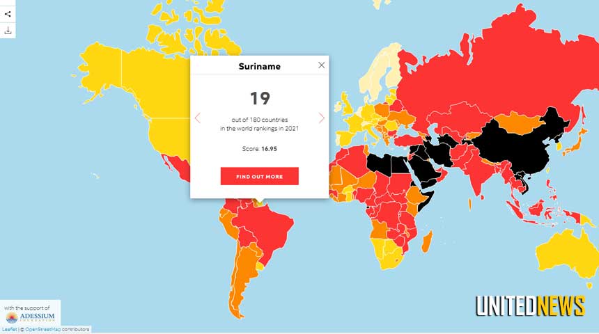 SURINAME OP DE 19de PLAATS VAN PERSVRIJHEID IN DE WERELD