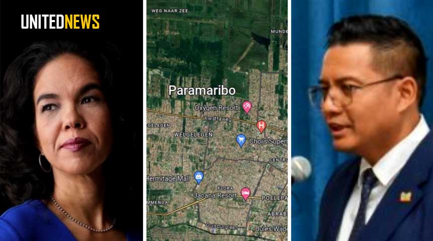 Fotocompilatie: Mr. Carol-Ann Tjon Pian Gi en minister Marciano Dasai van het ministerie van Ruimtelijke Ordening & Milieu (ROM).