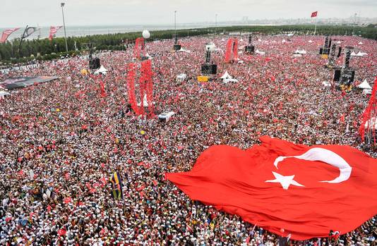 Erdogan waarschuwde gistermiddag bij zijn laatste verkiezingsmanifestatie in Istanboel dat niemand zijn overwinning als vanzelfsprekend mag beschouwen. ,,Neem je familie en vrienden mee naar de stembus. Elk gebrek aan belangstelling kan ons, God verhoede, in de problemen brengen”, bond Erdogan tienduizenden op het hart.