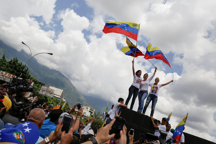 Ze zijn ontevreden over het feit dat de verkiezingsautoriteit (CNE) in Venezuela de referendumcampagne van tegenstanders van president Maduro heeft opgeschort. De protestmars was georganiseerd door Lilian Tintori en Patricia Gutierrez. Hun echtgenoten zijn belangrijke oppositieleiders, die in de gevangenis zitten. Donderdag werd de campagne om een referendum te organiseren, opgeschort omdat de CNE vermoedt dat er gefraudeerd is bij het verzamelen van de handtekeningen. Volgens de oppositie is deze beslissing niet grondwettelijk.