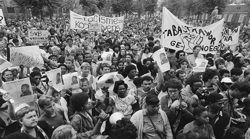 Demonstratie op 27 augustus 1983 tegen racisme en fascisme na de moord op de vijftienjarige Kerwin Duinmeijer in Amsterdam – Foto: Nationaal Archief |