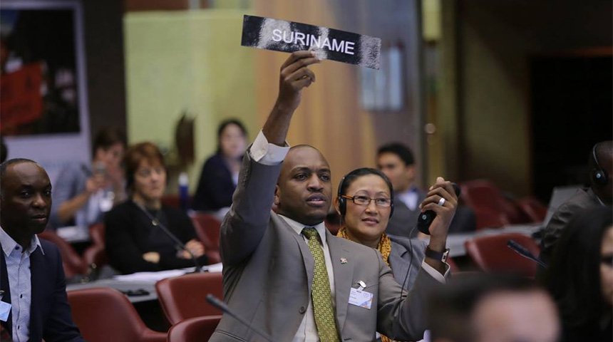 Een parlementaire delegatie onder leiding van de vicevoorzitter van De Nationale Assemblée Melvin Bouva vertoeft in Lusaka, Zambia, voor deelname aan de 134ste Algemene Vergadering van de Interparlementaire Unie (IPU), die van 19 tot en met 23 maart wordt gehouden. Voorafgaand aan deze vergadering wordt van 16-17 maart 2016 de IPU Global Conference of Young Parliamentarians gehouden. Deze bijeenkomst heeft als thema: “Agenda 2030: Youth leading the way, leaving no one behind.” De delegatie neemt op 18 en 19 maart deel aan de vergadering van de Geopolitieke groep van Latijns-Amerika en Caraibisch gebied (Grulac). Ook vindt simultaan de meeting van de Assocation Secretaries Generals of Parliaments (ASGP) plaats.