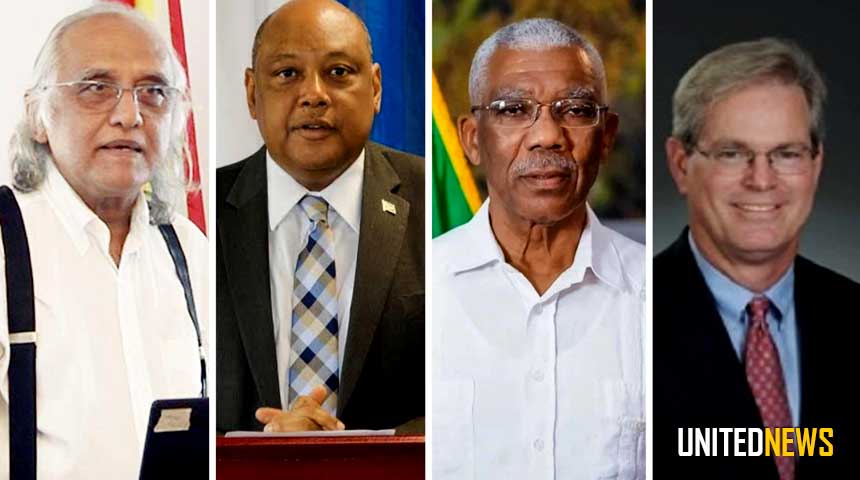 Foto compilatie: Registeraccountant, Christopher Ram, voormalig minister van Natuurlijke Hulpbronnen, Raphael Trotman, ex-president van Guyana, David Granger en voormalige vicepresident van Exxon, Stephen Greenlee| Bron: Kaieteur Nieuws