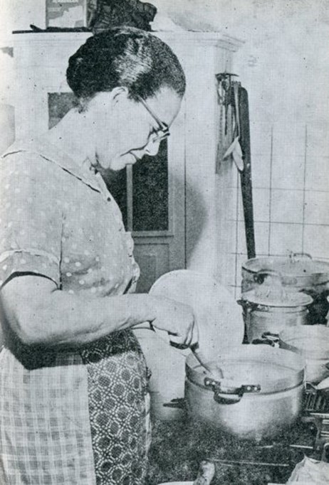 Mevr. Cornelly Hoffman. Zij was toen werkzaam bij het Leger des Heil en was cheffin in de keuken.