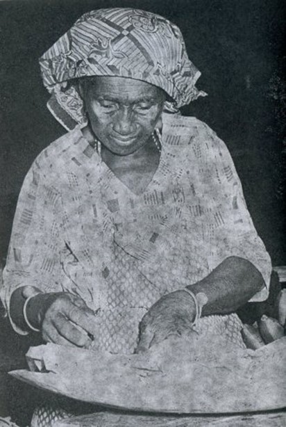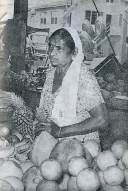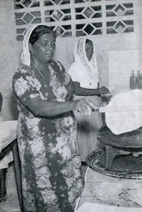 Vrouwen die roti’s maken in de destijds alom bekende Filia rotiwinkel en bar aan de Kwattaweg, schuin tegenover de Nwe Charlesburg.