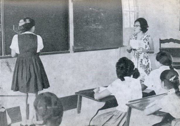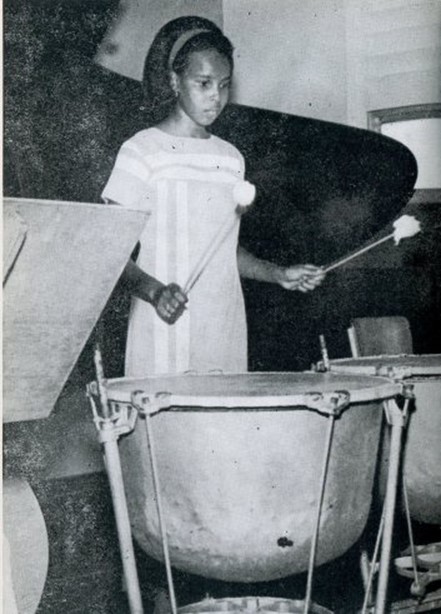 Haidy Nelson, leerling van de C.R. Froweinschool. Haidy Nelson zat op de Volksmuziekschool, toen aan de Grote Combeweg. Het gebouw staat er niet meer. Ze was ook lid van het jeugdorkest. Ze kwam uit een hele muzikale familie. De jurk die ze aanheeft was roze met blauwe strepen