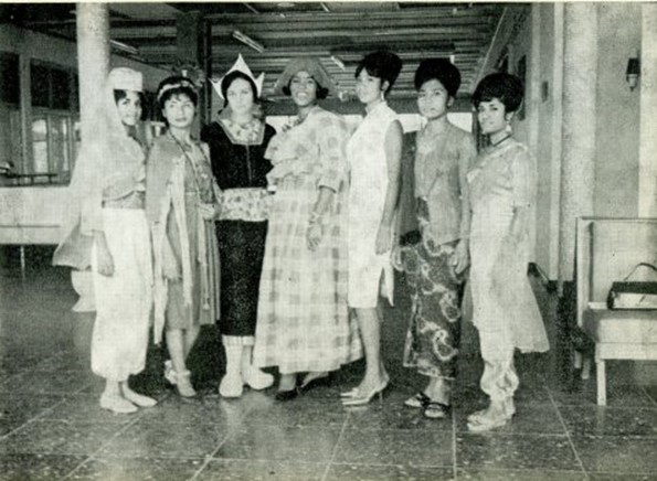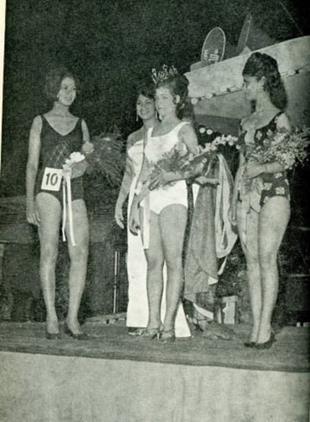 Miss Suriname Verkiezing: van links naar rechts: Anita van Eijck (Miss Suriname 1965), Linda Haselhoef (Miss Suriname 1966), Josta Hubbard.