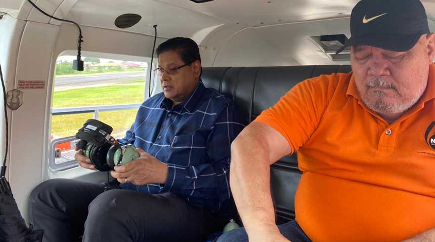 Foto: President Santokhi onderweg naar de overstroomde gebieden