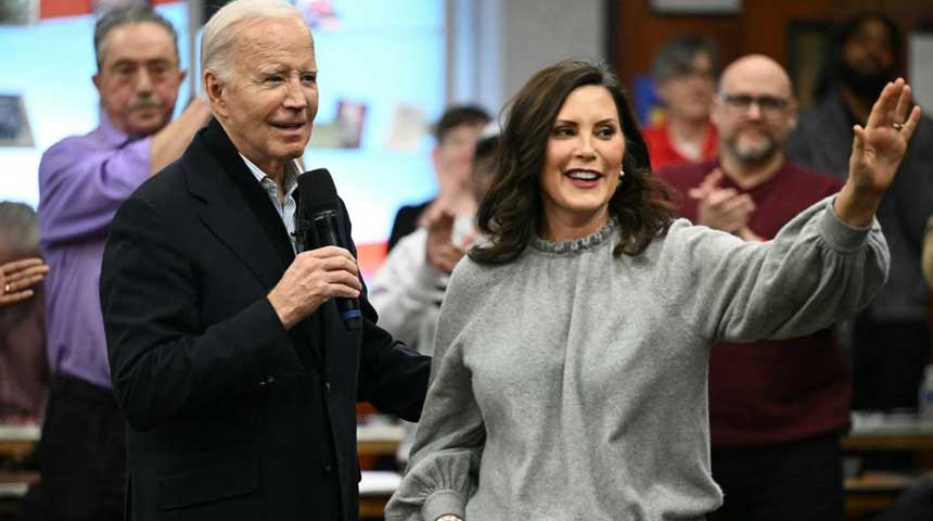 Foto: Gouverneur van Michigan Gretchen Whitmer met president Biden